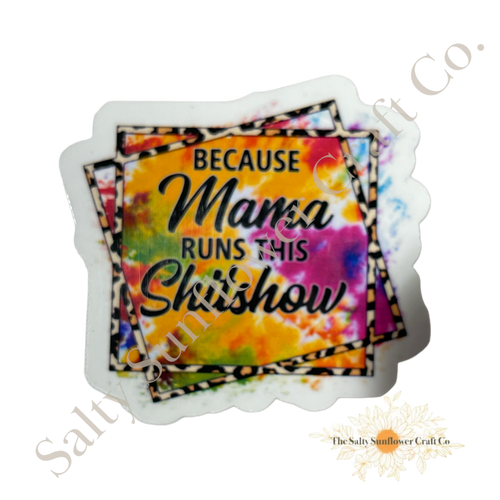 Because Mama Runs This Shit Show Version 2 Rainbow Print Sticker