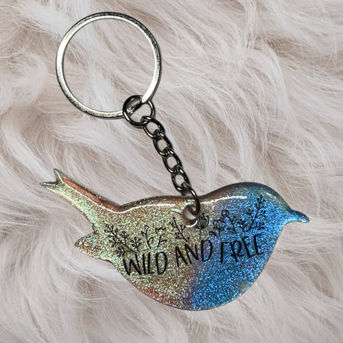 Bird Acrylic Keychain "Wild and Free" Floral - Blue/Pink Shimmer