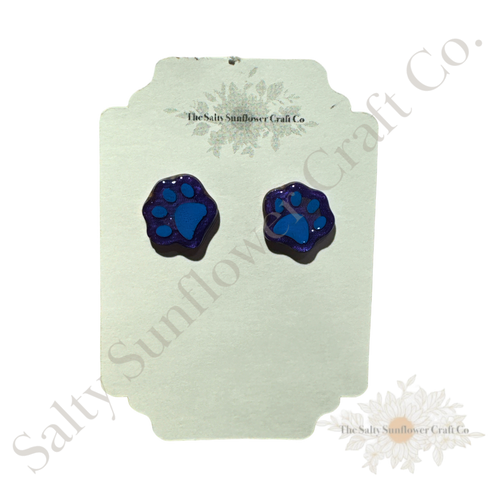Blue Paw Print Cat Dog Stud Earrings