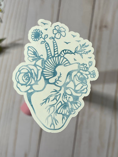 Blue Watercolor Beating Heart Sticker