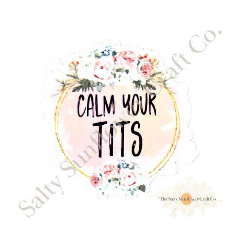 Calm Your Tits Floral Frame Sarcastic Funny Sticker