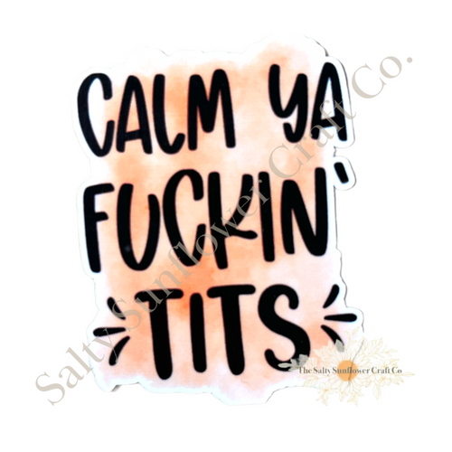 Calm Ya F***Ing Tits Orange Watercolor Sarcastic Sticker