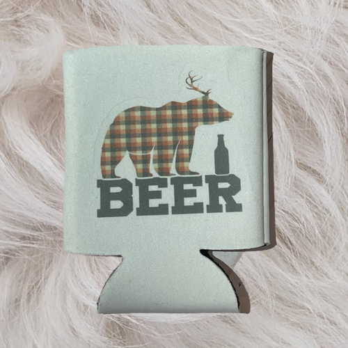 Deer Beer Plaid Koozie