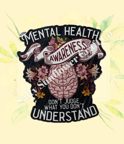 Don't Judge What You Don't Understand Floral Brain with Ribbon Mental Health Black Sticker