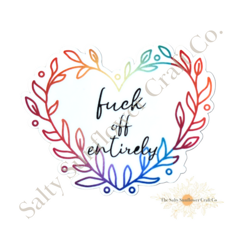 Fuck Off Entirely Laurel Heart Rainbow Sticker