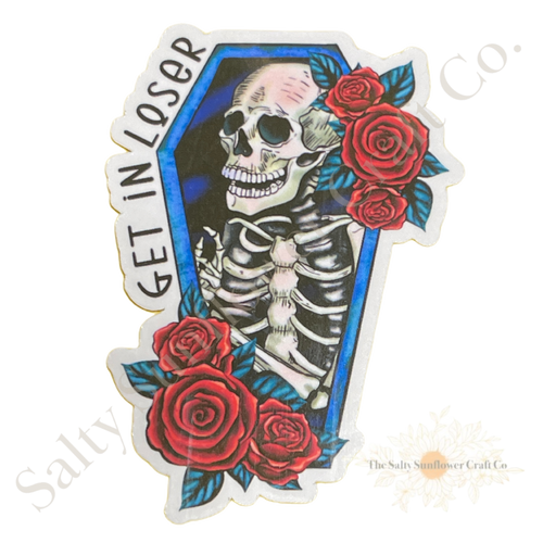 Get In Loser Coffin Skeleton Valentines Themed Sticker