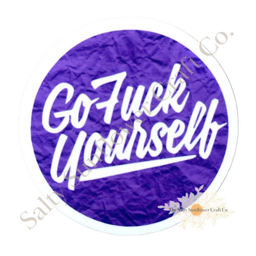 Go Fuck Yourself Round Purple Sarcastic Funny Sticker