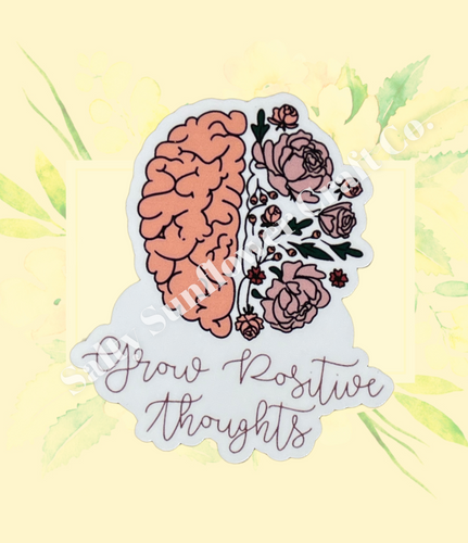 Grow Positive Thoughts Pink Floral Brain Mental Health Sticker