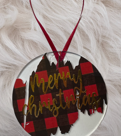 Handmade Buffalo Plaid Merry Christmas Acrylic Christmas Ornament