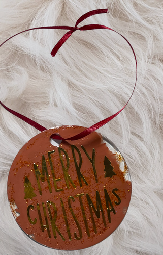 Handmade Red Glitter Merry Christmas Acrylic Christmas Ornament