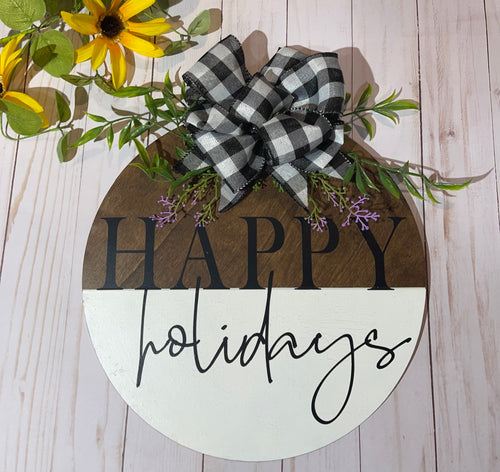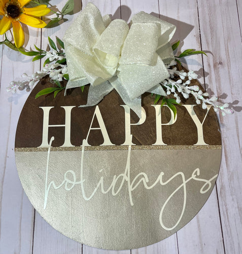 Happy Holidays Door Hanger - Cream/Rose Gold